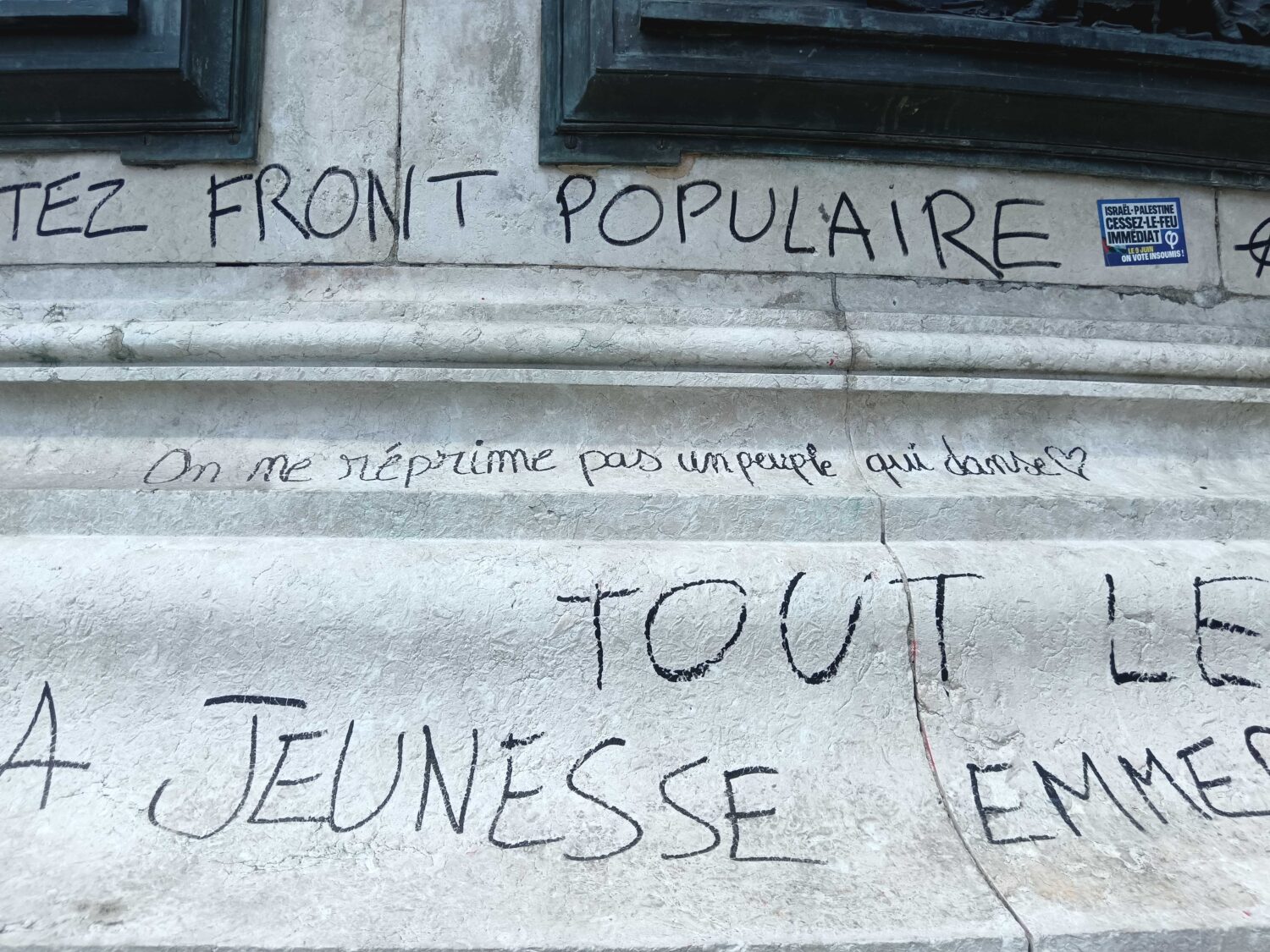 Le monument historique de la place de la République est défiguré par des tags des plus primaires et outranciers.