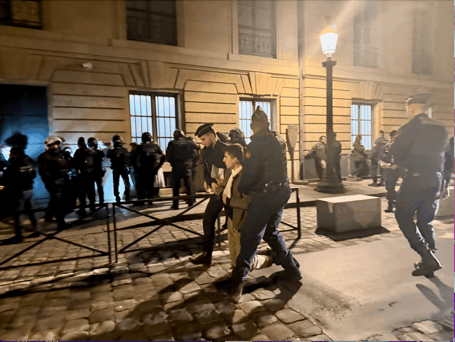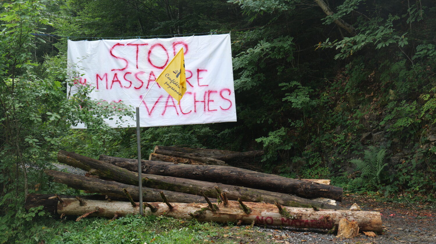 Une banderole sur laquelle figurait une citation de Charles Péguy a aussi été saisie.