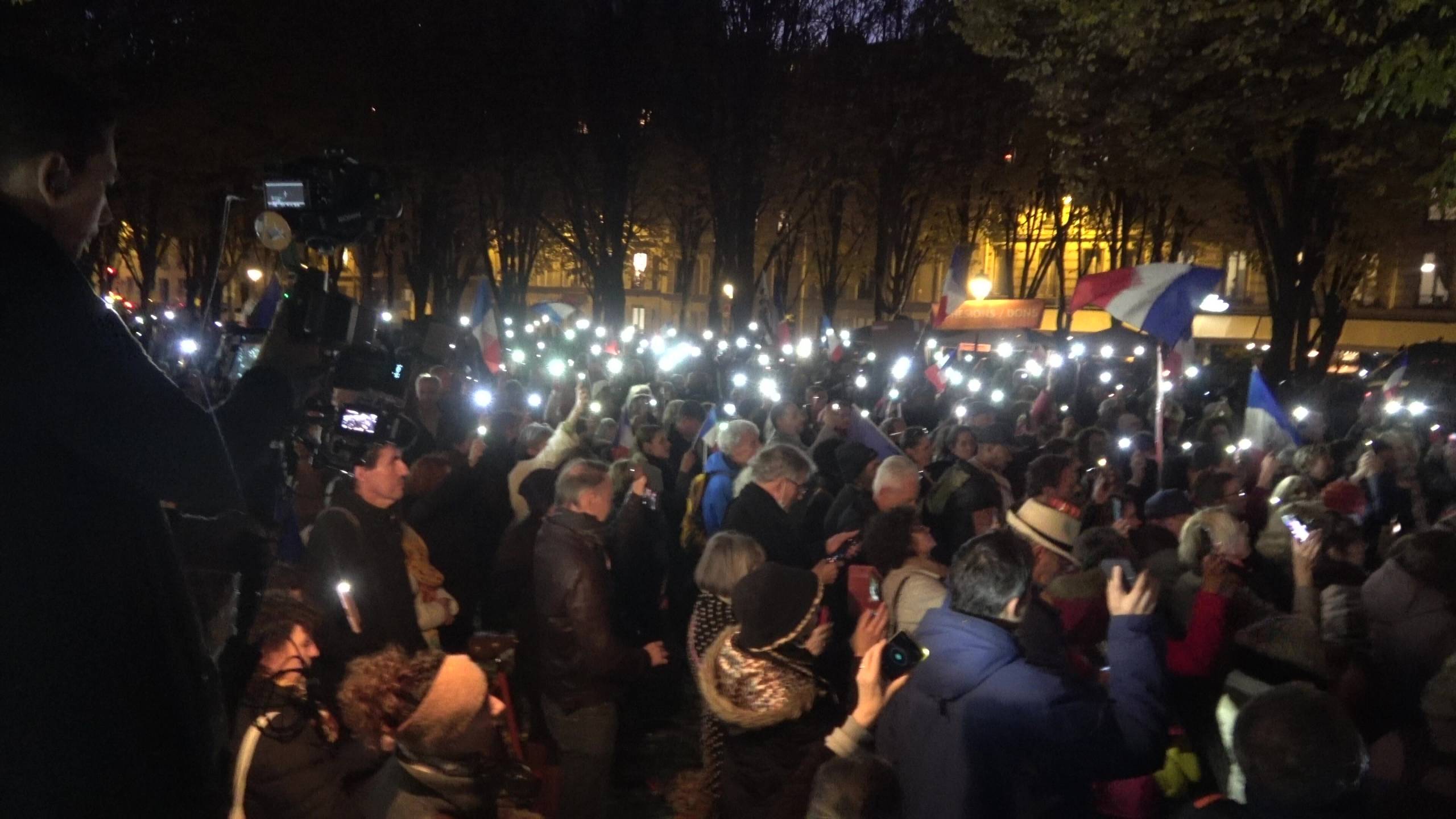 À l'appel des Patriotes, le mouvement de Florian Philippot, environ 700 personnes se sont déplacées devant l’ambassade d’Autriche (Paris, 7e arrondissement), ce jeudi, pour exprimer leur solidarité avec le peuple autrichien.