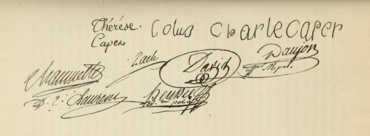 La signature de David au bas des aveux extorqués à Madame Royale et Louis XVII (in « Louis XVII », par A. de Beauchesne, 1861). Consultable ici : https://archive.org/details/louisxviisavieso02beau/page/n11/mode/2up?q=David