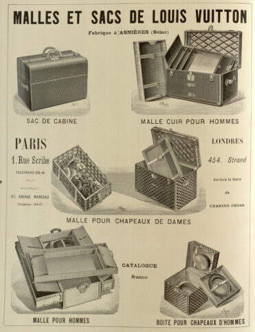 1854. Louis corrige déjà les défauts majeurs des bagages existants : il remplace le revêtement en cuir des malles et leurs couvercles (arrondis, pour laisser couler la pluie) par de la toile, plus légère, plus imperméable et plus résistante à l’eau ; et il donne aux malles un sommet plat qui permet de les empiler. Il crée, également, la première serrure inviolable, toujours opérationnelle aujourd’hui, puis un catalogue pour que les clients puissent choisir les articles avant de les fabriquer et de les envoyer. Le succès est éclatant. L’entreprise prospère et, quelques années après, il emploie vingt salariés et ouvre un atelier plus grand à l’extérieur de Paris, dans le village d’Asnières, profitant ainsi du transport fluvial de la Seine. Il y fait construire sa résidence familiale, qui deviendra le musée Louis-Vuitton. Mais la guerre franco-prussienne de 1870 éclate et tout le monde fuit. Louis retrouvera le village et l’entreprise en ruine.