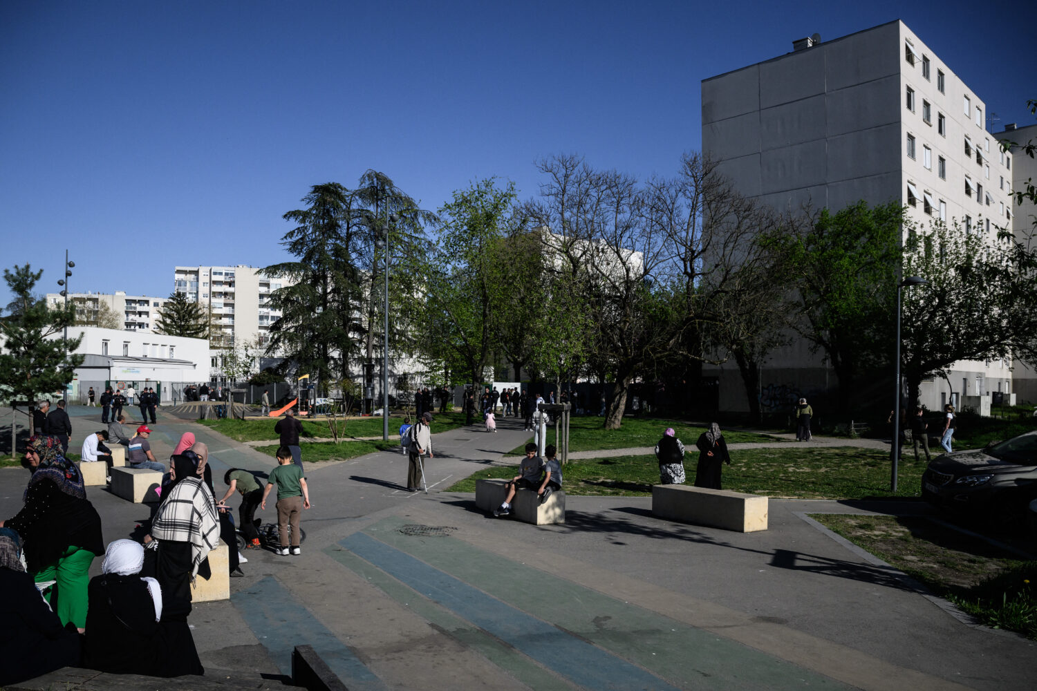 Selon les organisateurs, le groupe comprend 80 enfants et 17 mineurs isolés. Des tentes ont été dressées sur le parvis.