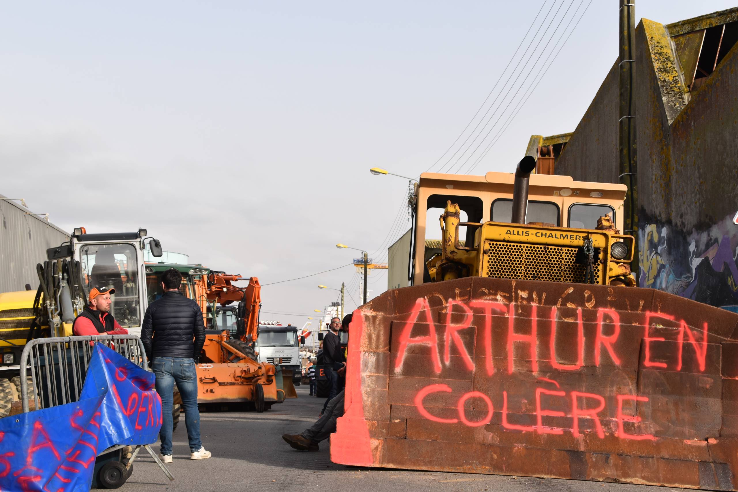 Ce mardi 15 mars, à Lorient, des dizaines de tracteurs, de camions et d’engins de chantier bloquent les accès au dépôt pétrolier de la ville.