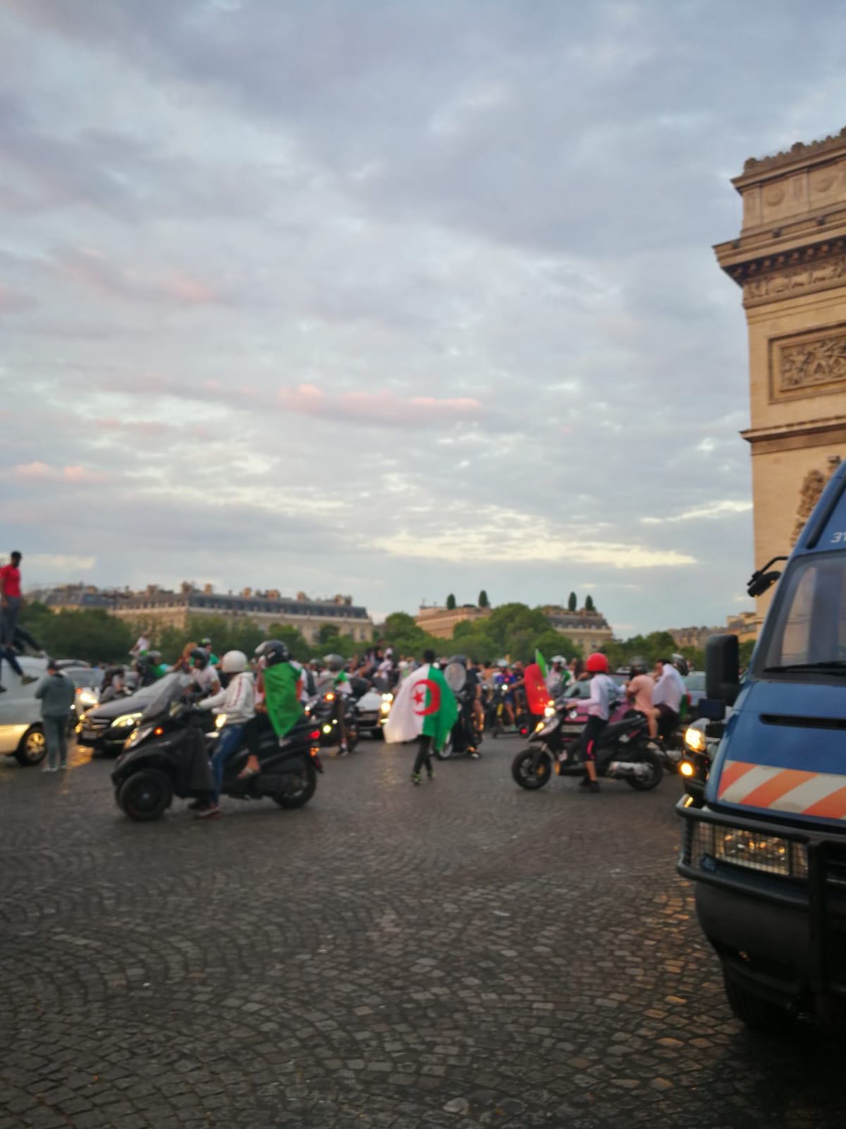 Si le succès de l'Algérie en football a enthousiasmé les supporters ici, là-bas, elle a enflammé les banlieues et les Champs-Élysées.
