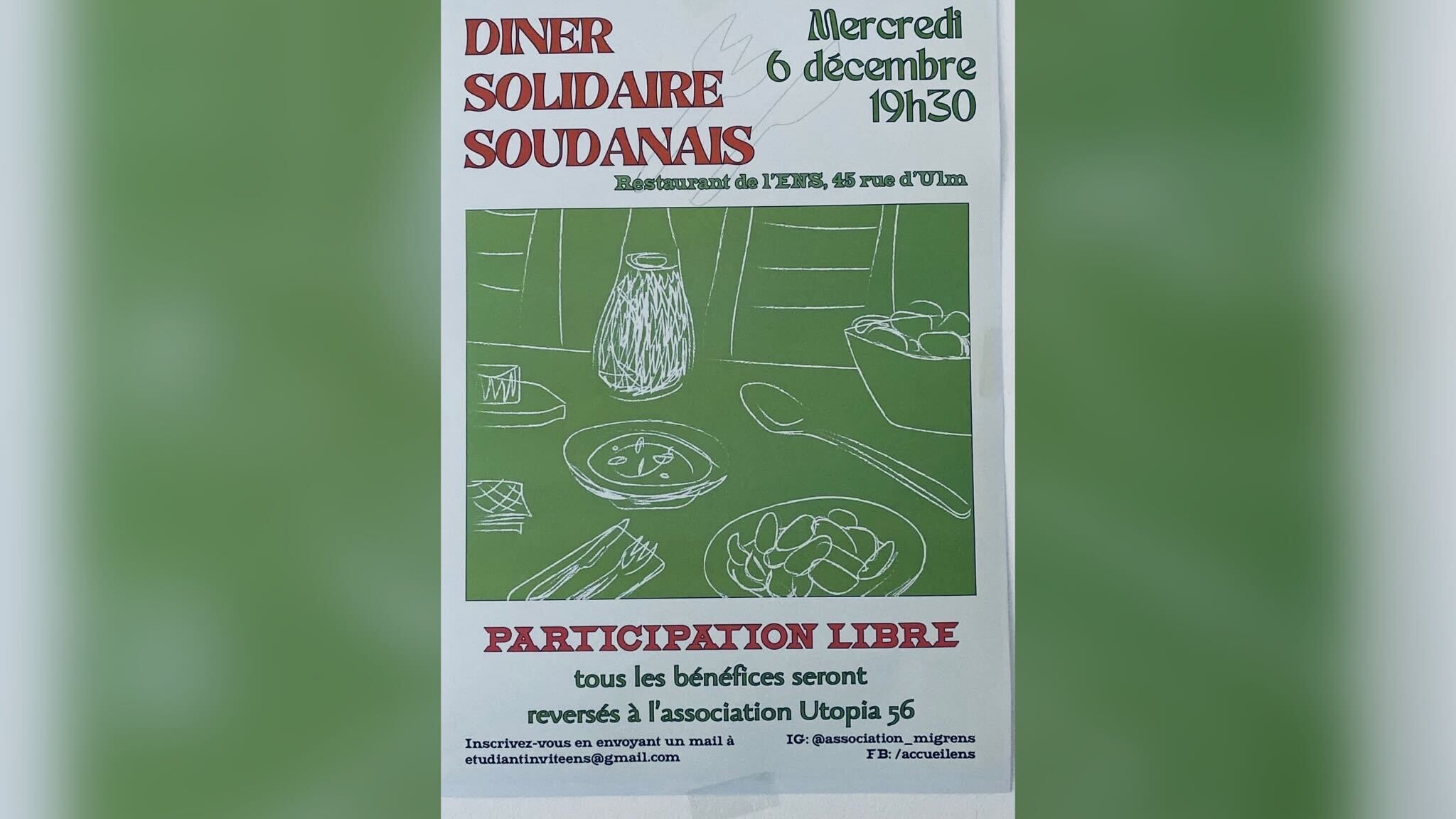 Ce 6 décembre, l'association MigrENS organise un dîner dont les bénéfices seront reversés à Utopia 56.