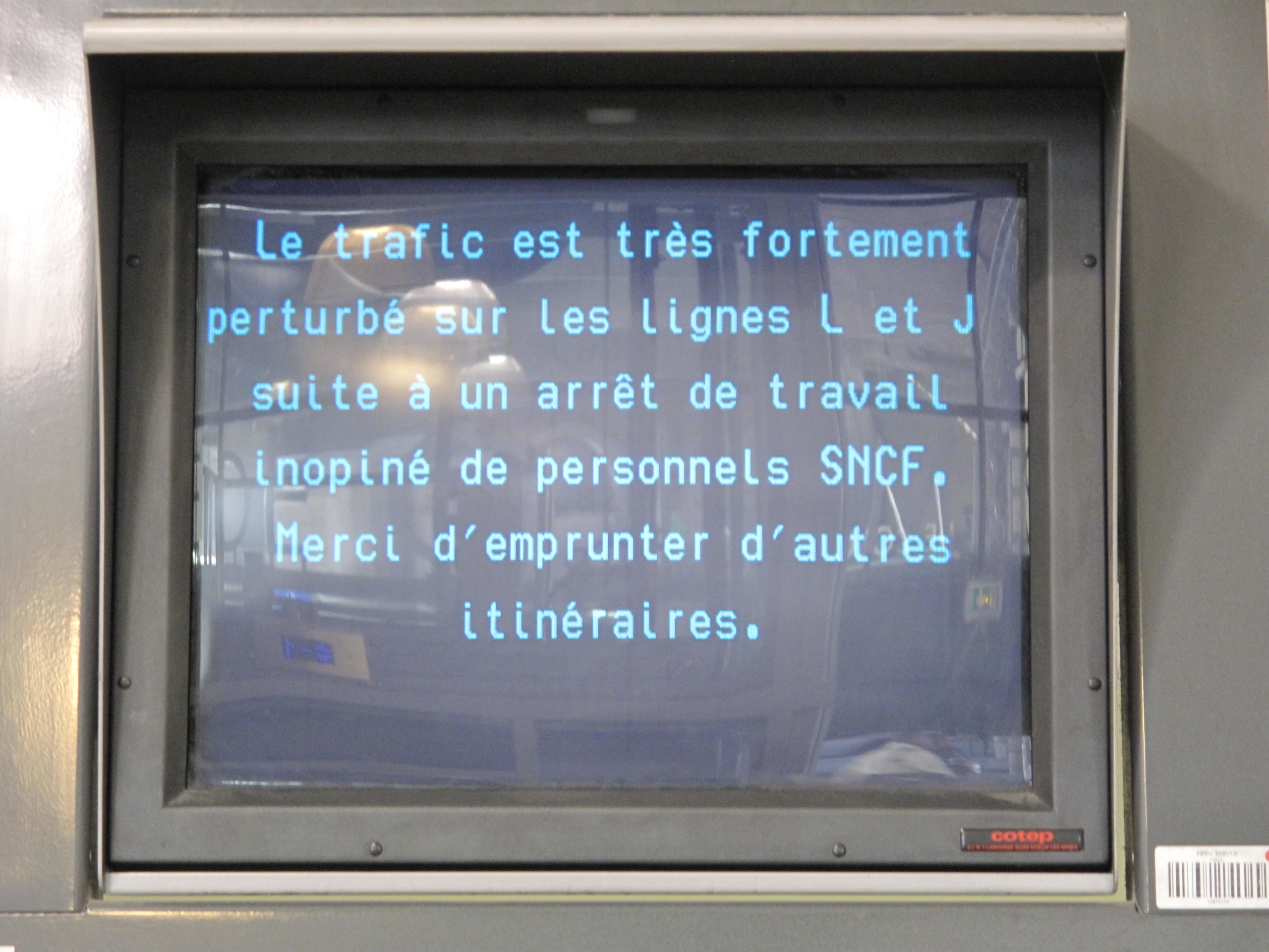 « SNCF, c’est possible ! », disait la pub en 1988. Je confirme : avec la SNCF, tout est possible. Y compris des grèves sauvages...