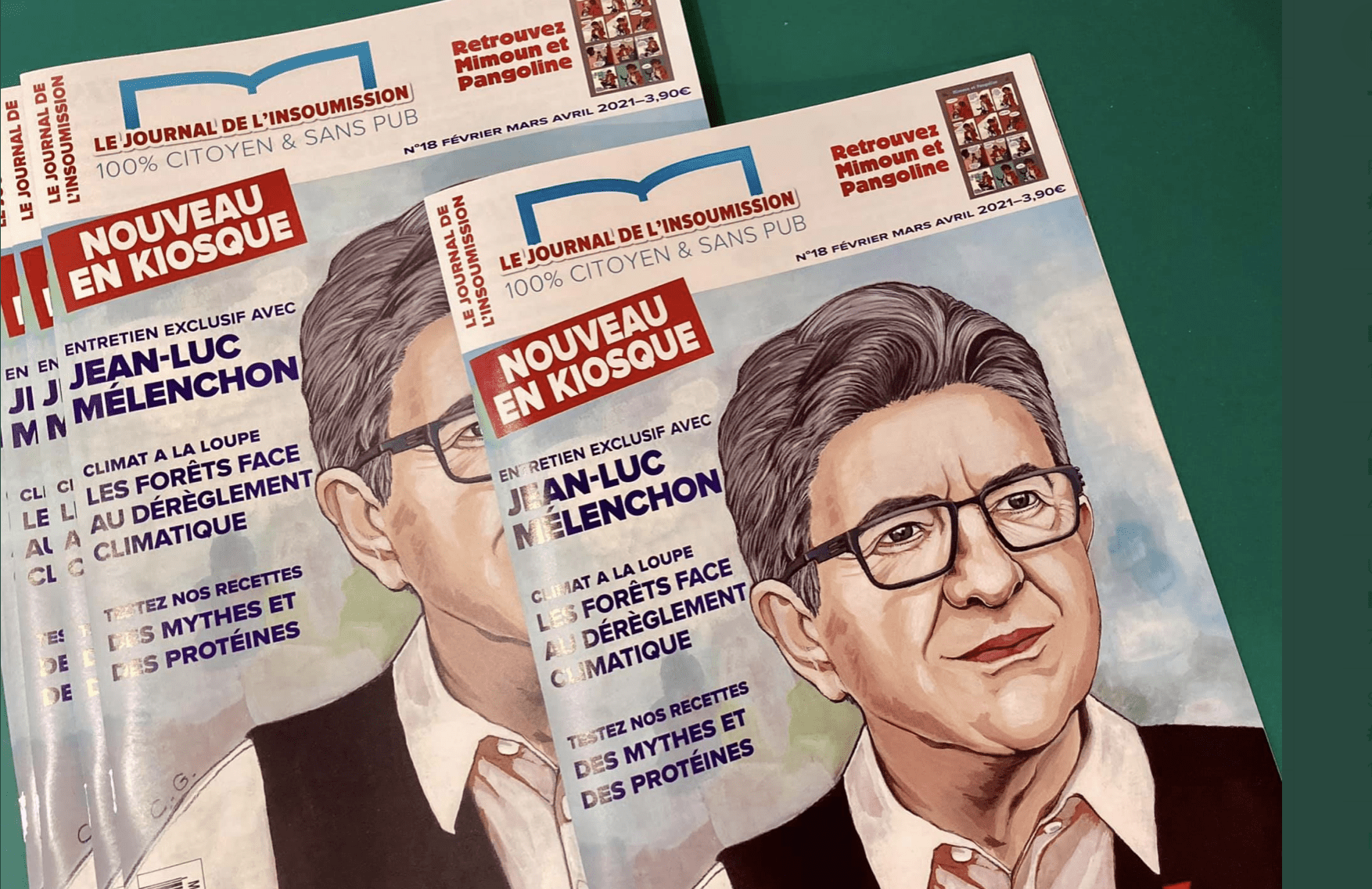 Et qui figure en couverture du premier numéro du Journal de l’insoumission en version papier ? Mélenchon Jean-Luc.