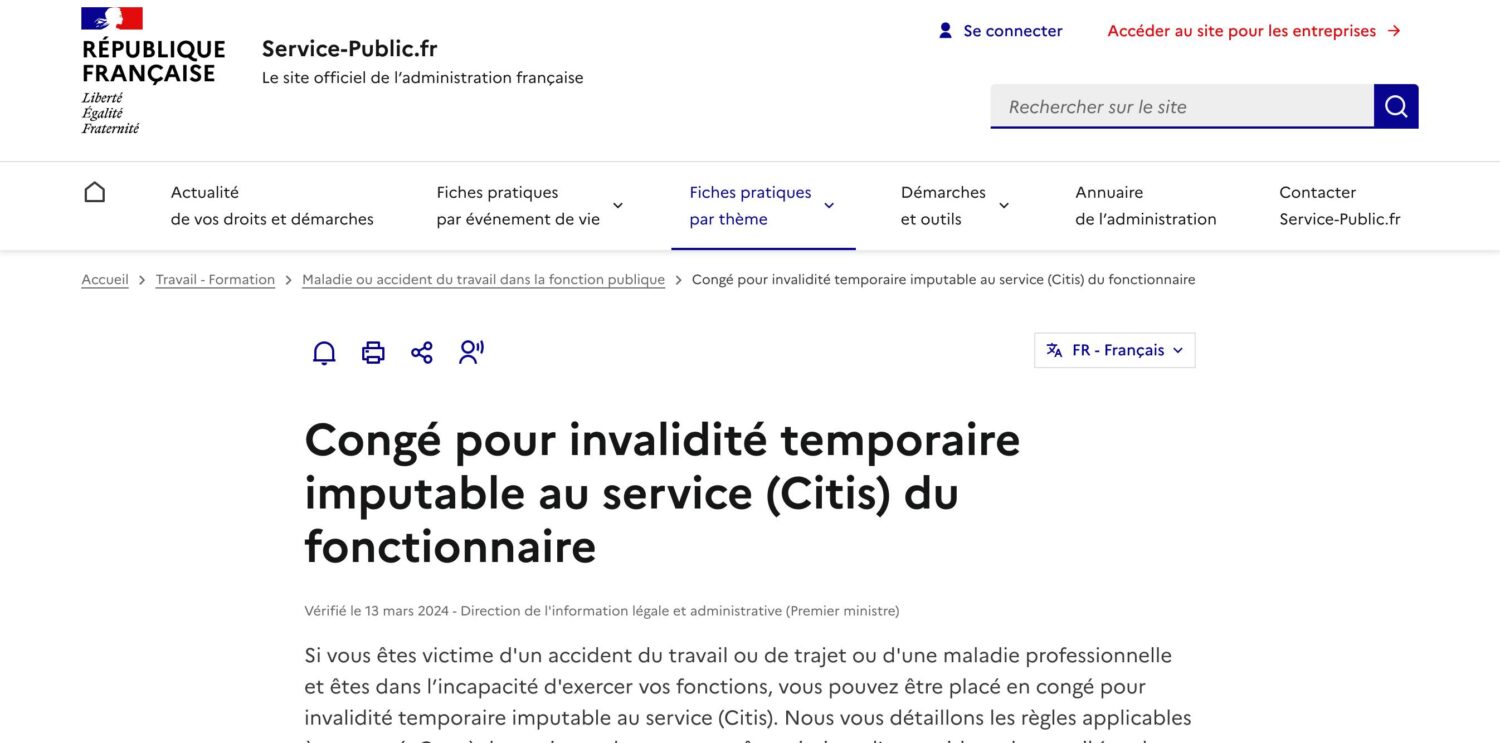 Le vrai jackpot du fonctionnaire, c'est le congé pour invalidité temporaire imputable au service, le CITIS.