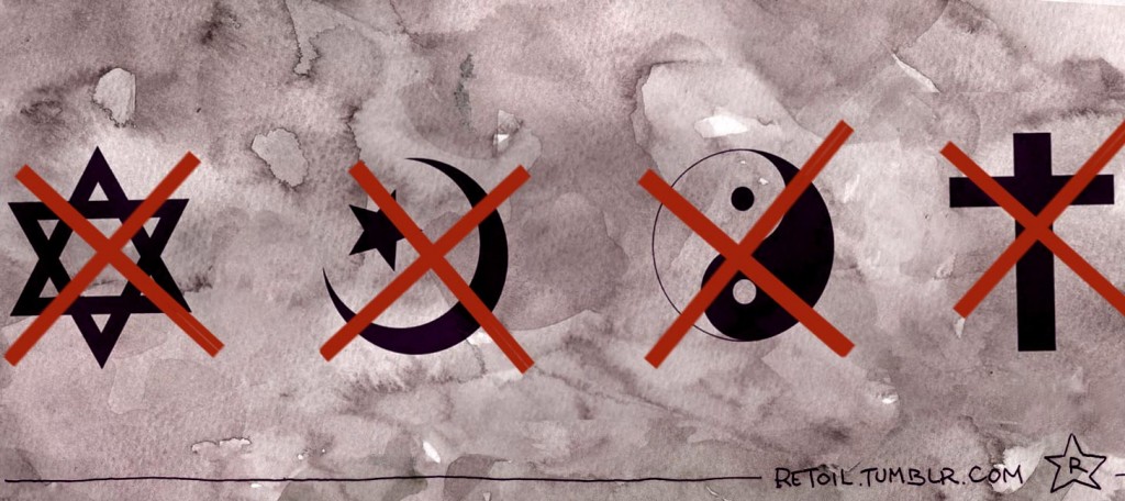 Merci d’ôter vos pieds du bénitier et vos mains de la porte de la sacristie : vous violentez la laïcité, qui n’est pas seulement là, en théorie, pour vous arranger.