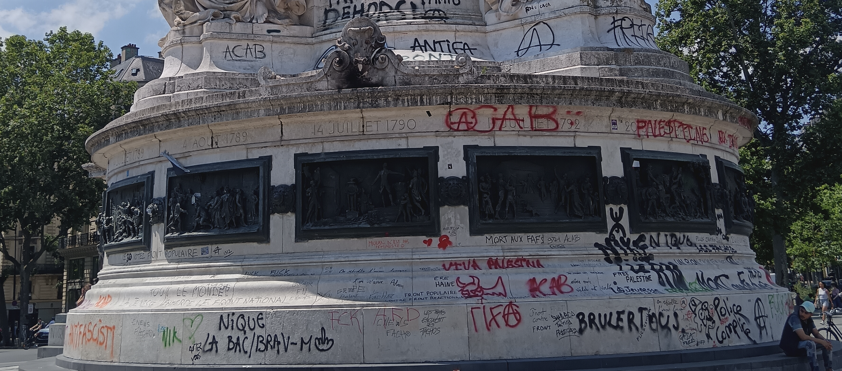 Le monument historique de la place de la République est défiguré par des tags des plus primaires et outranciers.